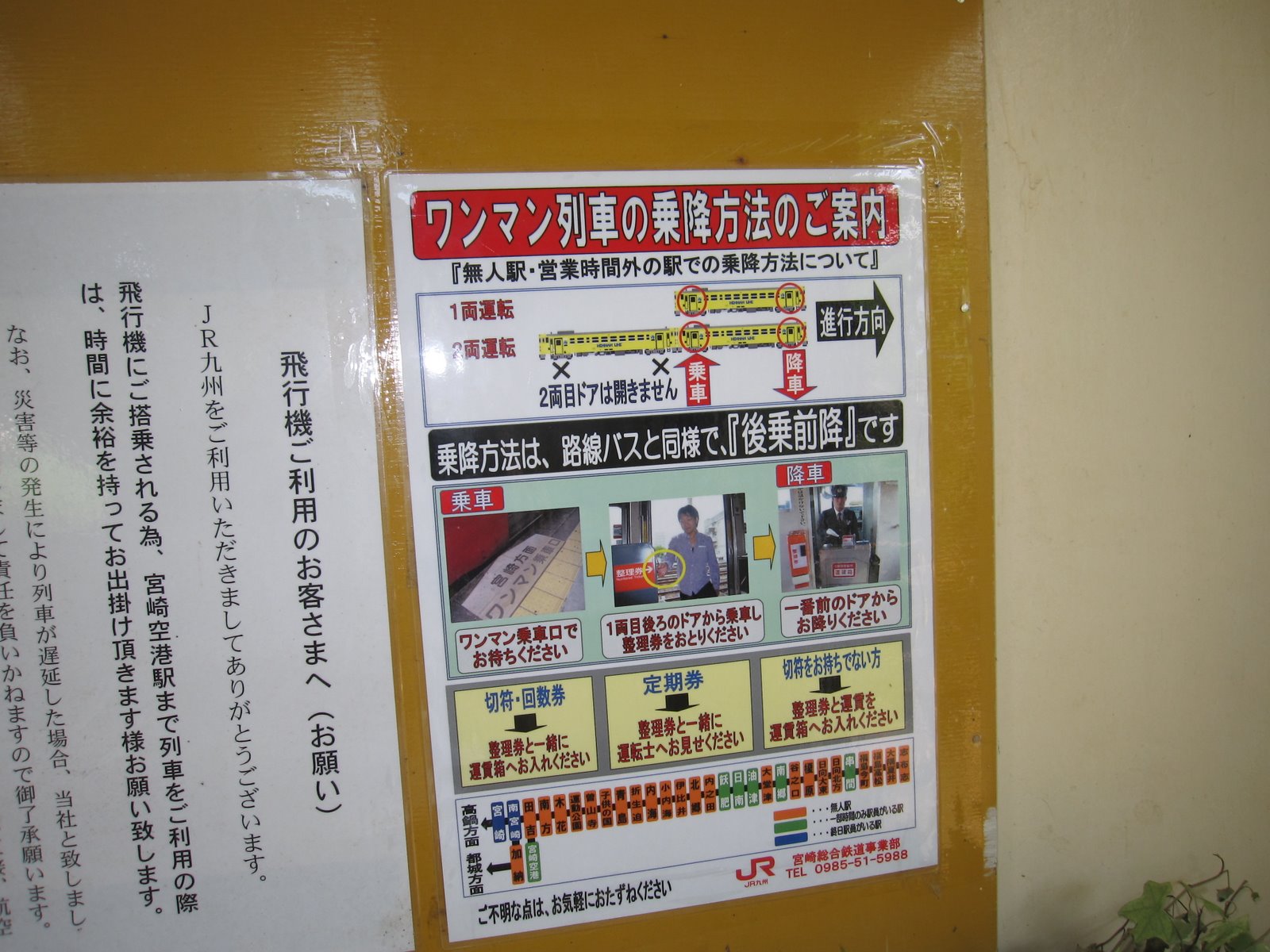 宮崎12:23発-JR日南マリーン号(志布志行)→13:38着油津14:10発-Bus宮崎駅空港[¥570]→14:31着鵜戸神宮入口16:21発-Bus宮崎駅空港・宮崎駅[¥550]→16:36着伊比井16:58発-JR日南線(南宮崎行)→17:39着南宮崎18:06発-JR日豊本線(佐土原行)→18:10着宮崎